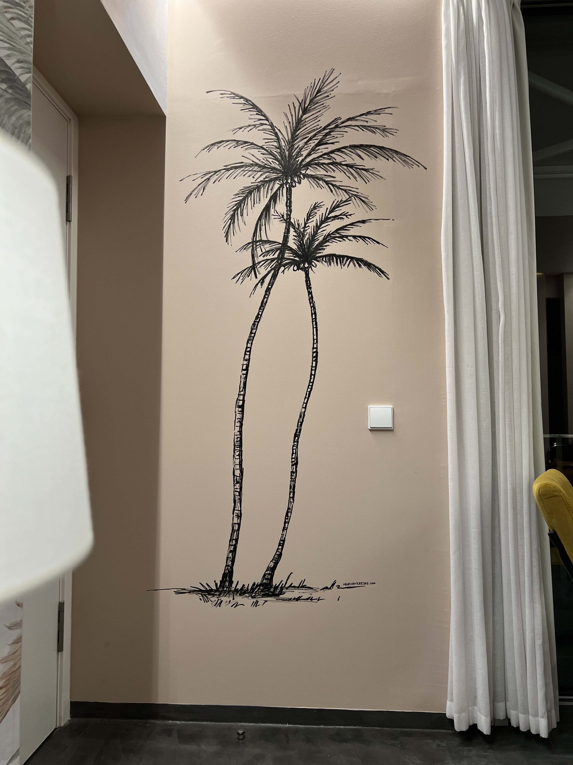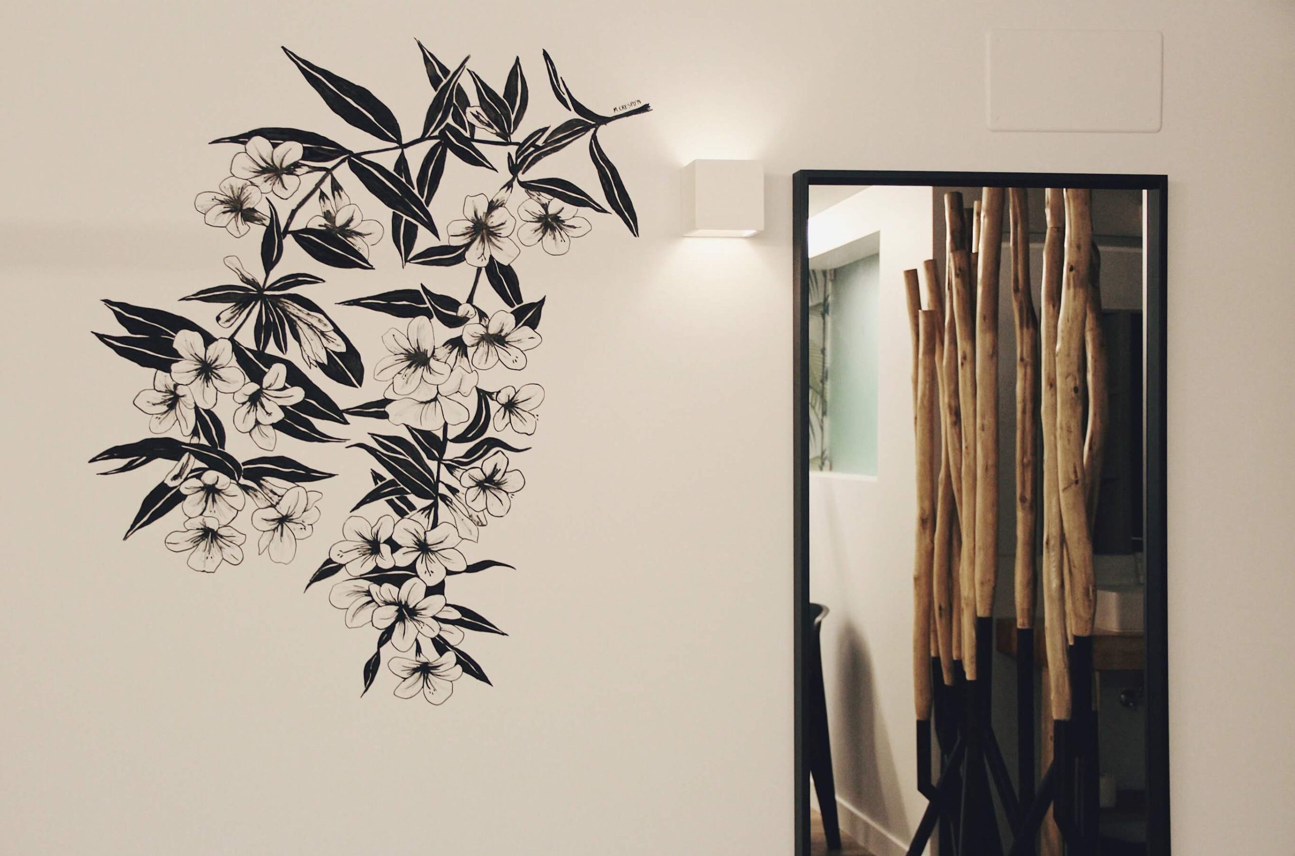 Em parceria com ateliês de Design de Interiores, criei murais exclusivos para quartos de hotéis e residências, concebidos para harmonizar com a decoração e proporcionar uma experiência visual memorável. Cada projeto foi desenhado para contar uma história e criar uma atmosfera acolhedora e sofisticada.
